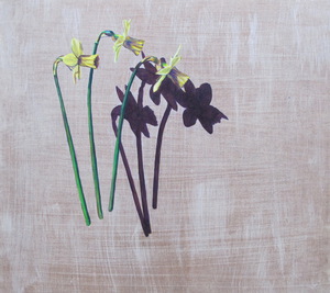 Drie paasbloemen wachten op vaasje