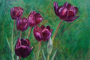 Zes zwarte tulpen