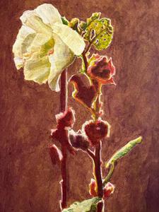 Witte stokrozen op doek